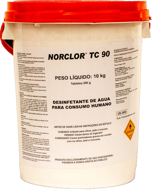 Formulado a base de Acido Tricloro Isocianúrico, Norclor® TC 90 é um produto estável e que apresenta lenta dissolução em água e a Arch Química assegura o seu fornecimento dentro dos mais rigorosos padrões de qualidade.
